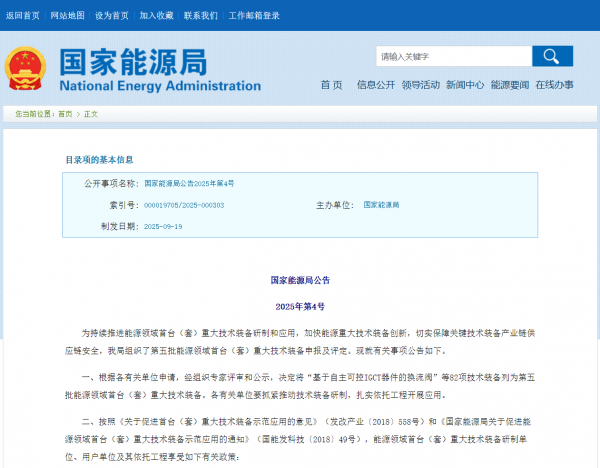 為持續推進能源領域首臺(套)重大技術裝備研制和應用,加快能源重大技術裝備創新,切實保障關鍵技術裝備產業鏈供應鏈安全,我局組織了第五批能源領域首臺(套)重大技術裝備申報及評定。現就有關事項公告如下。