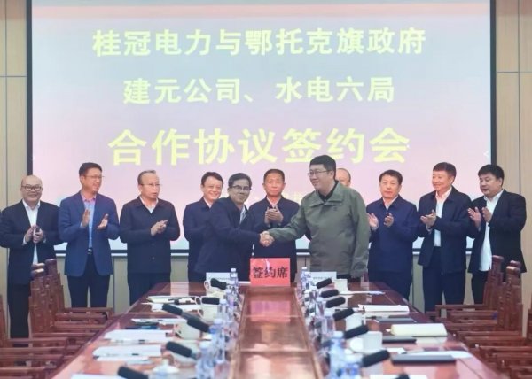 10月10日,內蒙古桂冠建元源網荷儲一體化項目合作簽約儀式在鄂托克旗舉行。鄂托克旗委副書記、政府旗長蘇智雄,廣西大唐桂冠新能源有限公司黨委書記、董事長趙大斌,中國水利水電第六工程局有限公司黨委書記、董事長翟萬全,鄂托克旗建元煤焦化有限責任公司董事長樊三維以及各方相關負責人出席簽約儀式并座談。
